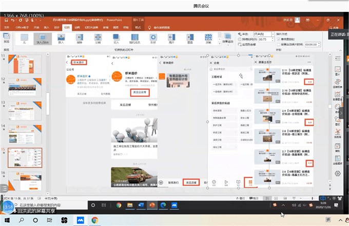 本次交流会因为疫情的影响,在腾讯会议的平台上进行。交流会前由四川办事处经理田洪武向同学们介绍了公司的公众号“虾米造价”并详细介绍了呆瓜店铺的内容。因为参加此次交流会的四川交通职业技术学院的学生,都是毕业班的同学,他们即将面临毕业走上工作岗位,不管是毕业设计还是以后的工作单位上,公众号的课程对他们都会有很好的帮助,能够对专业知识有更深层次的理解。