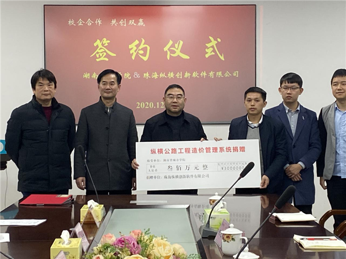 2020年12月4日下午3点,珠海纵横创新软件有限公司与湖南城市学院校企合作签约暨造价软件捐赠仪式在湖南城市学院土木楼722会议室举行。