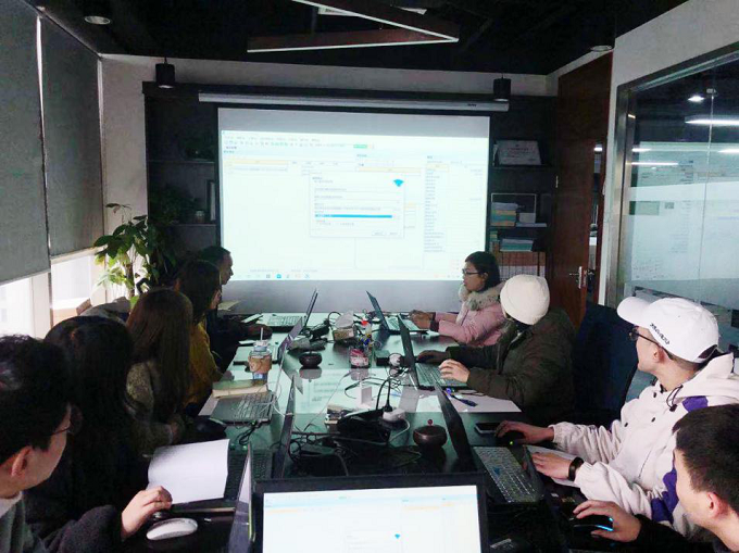 图为给中天新合建设咨询有限公司员工讲解四川养护软件操作