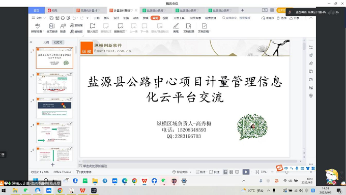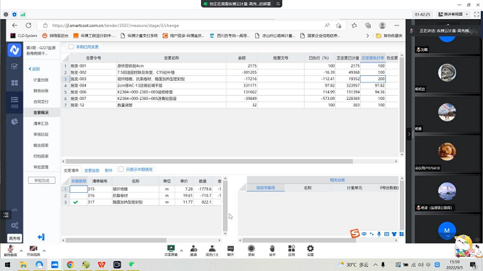 本次培训采用线上课程的方式进行,以项目全过程动态管理及工程管理管理为主题,由纵横云计量技术服务人员使用计量支付云平台进行一个全过程的操作和详细的讲解,让大家感受到云平台是一款结算决算、计量支付、投资控制、工程审计的专业软件,可以有效地帮助工程管理人员,实现“数字化、智慧化、标准化、规范化、精细化、信息化”的管理目标。