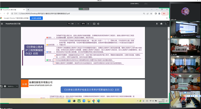 2023年1月12日,应白银公路事业发展中心之邀,纵横软件携手白银公路事业发展中心成功举办甘肃养护云造价应用交流会,中心技术科、养路科及相关科室参加了现场培训,中心下设9个基层单位通过线上视频参与本次技术交流会,在各参与方的鼎力支持,最终取得了圆满成功。