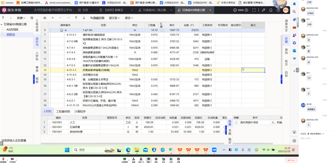 此次培训采用线上教学,以某高速公路段、涵洞工程图纸为实例,让学生在课堂内接触到实际项目,以2018版《公路工程建设项目概算预算编制办法》及甘肃省补充规定、《公路工程建设项目造价文件管理导则》、《公路工程预算定额》、《工程量清单计量规则-公路工程施工招标文件》为依据,结合纵横大司空云计价进行讲解和实操,将理论与实践融合为一体,更好的提高学习效率。