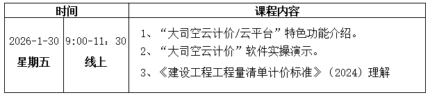 为贯彻执行2024版清单计价计算标准,满足造价专业人员对新标准配套计价软件需求,纵横开发的大司空市政建筑云计价平台(24清单)已发布。为使造价人员快速适应和掌握云计价/云平台建筑专业模块操作,提高工作效率,纵横公司将于2026年1月30日举办“大司空云计价软件免费实操培训班(建筑专业)”,此次培训采取线上教学的方式开展,热忱欢迎您来参加。