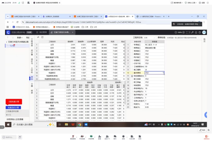 本次培训由纵横甘肃办采用线上会议的方式进行讲解,依据公路工程标准施工招标文件(2018年)、《公路工程建设项目概算预算编制办法》等文件规范,以编制一份实际项目预算文件为例,跟各位造价同仁们交流公路工程预算编制相关内容以及在大司空云计价中的操作和相关应用。