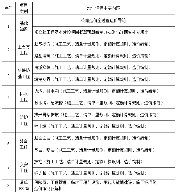 用实际工程项目的施工图图纸,对公路工程中路基、路面、交安工程及清单100章进行造价实战培训;讲师讲解+学员实操。
