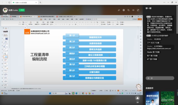 本次线上操作培训上午由四川办刘工通过“功能演示+案例实操”的方式,结合《公路工程基本建设项目概算预算编制办法》和四川省补充规定(川交函〔2024〕497号文件),系统地讲解了在大司空造价管控云计价中如何编制工程量清单预算,带着大家一起在软件中依次对新建项目文件、完善项目属性、费率文件选择、100-700章清单、工料机分析及单价调整、分摊调价、报表输出和项目文件导入导出等功能一一进行操作演示。