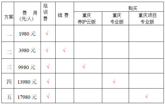 1、培训费用(学员可根据需求选择收费方案)
