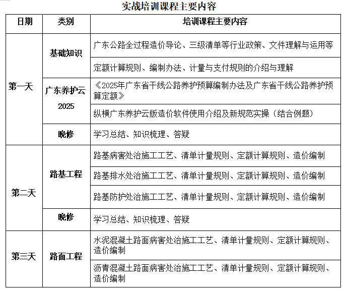 <<广东省干线公路养护预算编制办法>>(GDJT/ZJ301一2025)、<<广东省干线公路养护预算定额>>(GDJT/ZJ302一2025),自2025年12月25日起施行,纵横软件公司响应文件精神,配套开发<<纵横公路养护造价管理云版软件>>(广东养护2025),为了更好的服务我省造价人员,解决实际工作中遇到的软件操作及造价疑难问题,纵横软件公司定于2026年6月10日至12日在清远市城区举办“纵横广东养护工程工程造价编审实战培训班 ”,热忱欢迎各公路工程造价及相关行业单位安排人员参加。